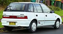 The second-generation MF Barina was a rebadged second generation Suzuki Cultus, co-developed with GM using the GM M platform and marketed worldwide under nearly a dozen nameplates, prominently as the Suzuki Swift, Pontiac Firefly (Canada) and Geo Metro (Chevrolet's sub-model in the USA). A five-door hatchback was first released in January 1989, and was followed by the introduction of a three-door "GS" hatchback in September 1990.