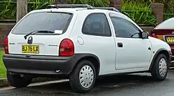 From November 1997 until late 2000, Holden sold the Barina Cabrio soft top convertible.[10] Only 581 were sold. Based on the Barina City three-door hatchback,[11] the soft top version was built in Spain like the rest of the SB series lineup.[12] However, once imported into Australia, Holden organised for the conversion into cabriolets at Clayton, Victoria through its performance vehicle partner, Holden Special Vehicles (HSV).[10] Separately in mainland Europe, the same concept was sold from 1995 as the Opel Corsa Twister, converted by R&R Kupfer in the Dutch city of Dordrecht.[13] A small number were exported to the United Kingdom between 1998 and 1999 for sale with Vauxhall Corsa branding.[14][15]