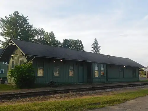 Holland Patent station is a historic train station located at Holland Patent in Oneida County, New York. It was built in 1890 and is a one-story, rectangular, wood-frame building sheathed in board-and-batten siding. It was built by the Utica and Black River Railroad, later acquired by New York Central. It was used until 1960 and now the line is used by the Adirondack Scenic Railroad.[2]