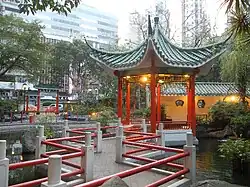 Hollywood Road Park is also the site of the former Tai Tat Tei (or Dai tat dei, lit. "large piece of land"), which was nicknamed the "poor man's nightclub" in the 1960s and 1970s.[3][4][5] The Tai Tat Tei was popular bazaar market. It showcased a rendez-vous of old Hong Kong style street entertainment activities. People gathered to browse at night market, eat cheap food and watch free entertainment.[6]