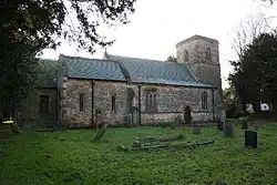 All Saints' Church is a Grade I listed Anglican church.[4] Kelly's mentions that it comprises a chancel, nave, aisles and south porch, and a square tower containing three bells, with the chancel incorporating richly painted frescoes and a carved oak screen separating the chancel from the nave. Benches were carved by a Mr Swaby of Marsh Chapel when the chancel was rebuilt in 1851 by a Mr Nicholson of Lincoln.[3] The church was restored in 1859-60 and 1870-74 by George Gilbert Scott, who rebuilt the north arcade and added, according to Nikolaus Pevsner, a "glittering mosaic reredos... made, according to Canon Binnal, by a Catholic Italian who insisted on smoking his pipe while doing it". Also noted was a chalice and paten cover dated 1569.[5] Scott also repaired both aisles, and rebuilt a mortuary chapel and the whole roof.[3]