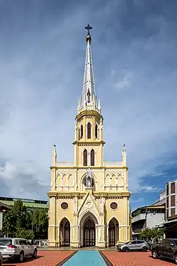 The Holy Rosary Church (Thai: วัดแม่พระลูกประคำ, pronounced [wát mɛ̂ː pʰráʔ lûːk prā.kʰām]), also known as Kalawar Church (โบสถ์กาลหว่าร์, [bòːt kāːlāwàː]; from Portuguese: Calvario), is a Roman Catholic church in Bangkok. It is located in Samphanthawong District, on the eastern bank of the Chao Phraya River. The history of the church dates to 1769, when a group of Portuguese Catholics resettled in the area after the fall of Ayutthaya; the current church building, in Gothic Revival style, was built in 1891–97 on the site of two previous structures.