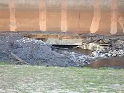 Repairs for the dam were expected to begin in August 2012 and end October 2013 but they never occurred.[12] A lawsuit was filed by the town in mid-October 2012, complaining that the companies involved were delaying the repairs which had yet to begin.[13] In April 2013 Mayor Jackie Warner requested a plan to remove the dam but the town sued the builders for $10 million in May in order to pay for repairs.[14][15] In July 2014, the town received a $9.4 million settlement from the builders.