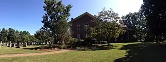 Hopewell Presbyterian Church is a historic Presbyterian church complex and national historic district located near Huntersville, Mecklenburg County, North Carolina. The church was built in 1833–1835, renovated and enlarged in 1859–1860, and expanded by a Sunday School addition in 1928. It is a U-shaped brick and brick veneer building composed of three connected blocks all covered with front-gable roofs. The church is a rectangular gable-front brick building standing on a low mortared fieldstone foundation and Greek Revival style design elements. Also on the property are the contributing pumphouse (c. 1925), cemetery gate (1845), and cemetery with burials dating to 1775. The cemetery contains one of the two largest collections of box and chest tombs in North Carolina. General William Lee Davidson of the North Carolina militia, killed in 1781 at the Battle of Cowan's Ford during the American Revolutionary War, is buried in the cemetery.[2]