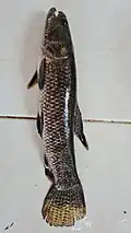Hoplias malabaricus, also known as the wolf fish, tiger fish, guabine or trahira, is a predatory Central and South American freshwater ray-finned fish of the characiform family Erythrinidae.