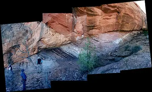 A horse, in geology, is any block of rock completely separated from the surrounding rock either by mineral veins or fault planes. In mining, a horse is a block of country rock entirely encased within a mineral lode.[1] In structural geology the term was first used to describe the thrust-bounded imbricates found within a thrust duplex.[2] In later literature it has become a general term for any block entirely bounded by faults, whether the overall deformation type is contractional, extensional or strike-slip in nature.[3][4]