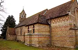 The Church of England parish church of Saint Barnabas was built in 1867, apparently on or close to the site of the former village chapel. This made the Priory chapel unnecessary, so when the Croke family sold Studley to John Henderson in 1877 the chapel was converted into a kitchen and offices.[3] The present St Barnabas' parish church was designed by the Gothic Revival architect William Butterfield and built in 1867. It is built of yellow brick relieved by red and blue brick detailing. It has a nave, chancel and north aisle. St Barnabas' has no tower but there is a west bell-turret with two bells. The stained glass windows are by Alexander Gibbs.[6] Early in the 19th century there were a number of Protestant Nonconformists in Horton and Studley, and some of their homes were licensed for them to worship in. The Methodist chapel was built in 1878.[3]