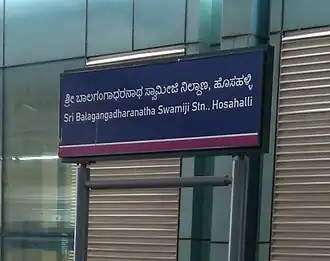 Sri Balagangadharanatha Swamiji Stn., Hosahalli (formerly known as Hosahalli) is an elevated metro station on the East-West corridor of the Purple Line of Namma Metro serving the Hosahalli area in Bengaluru, India. It was opened to the public on 16 November 2015.[1][2][3]