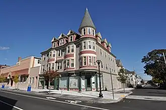 The Hotel Waverly is a historic hotel at 1162-1166 Acushnet Avenue in New Bedford, Massachusetts. The 3+12-story hotel was designed by locally prominent architect Samuel C. Hunt and built in 1901. The Queen Anne structure was originally designed to house four residential units on the upper floors, and retail space on the ground floor. In 1911 it was repurposed into the Hotel Waverly, with the second floor converted to a cabaret space. It was renamed the Hotel Touraine in 1922, operating as such until the mid-1970s.[2]