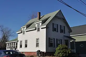 11 Beach Street is located in a residential area east of downtown Reading, on the southwest side of the short street. Its neighbor to the south, #17, is of substantially similar construction. It is a 1+1⁄2-story wood-frame structure, with a front-facing gable roof. Its front facade is three bays wide, with the entrance in the rightmost bay, sheltered by a shed-roof porch supported by turned columns. The attic half-story has two sash windows, and there is Stick style woodwork at the peak of the gable. Photos from a 1980 survey show fish-scale shingles and applied woodwork on the gable wall around and above the attic windows;[2] these features have been removed or covered over.[2]