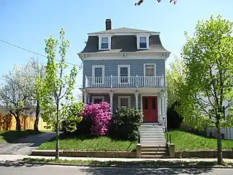 The House at 12 West Water Street in Wakefield, Massachusetts is a rare local example of a Second Empire house. The wood-frame house was built around 1860, and has two full stories, and a third beneath the mansard roof. It is three bays wide, with a wide double-door entry, and a porch across the front with elaborately decorated posts. The house may have been built by Cyrus Wakefield, owner of the Wakefield Rattan Company, and sold to a company employee. A later owner was George Cox, who owned a billiard parlor in the town center.[2]