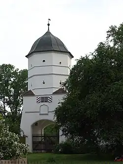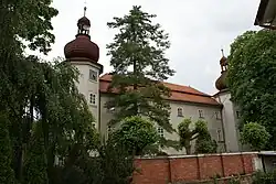 In 1599, the Schwarzenbergs were elevated to Imperial Counts, and the family was later raised to princely status in 1670.[1] In 1623 came the Styrian Dominion of Murau into the Schwarzenberg family due to the marriage of Count Georg Ludwig of Schwarzenberg (1586–1646) with Anna Neumann von Wasserleonburg (1535–1623). Furthermore, the House of Schwarzenberg acquired extensive land holdings in Bohemia in 1661 through a marriage alliance with the House of Eggenberg. In the 1670s, the Schwarzenbergs established their primary seat in Bohemia and, until 1918, their main residence was in Český Krumlov, Bohemia (now in Czech Republic).