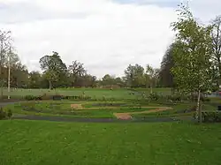 It is flanked to the west by Househill Park, which features a play area and small rose garden with the Levern Water flowing through it, and was the location of Hous'hill, the local country house[3][4] (dating from the early 1800s and once home to team room entrepreneur Catherine Cranston)[5] until its demolition following a fire, shortly before the building of the housing estate[5] – the rest of the surrounding land in the area was open woodland or farmers' fields.[3] To the east is the Silverburn Centre (a large 'out of town' retail, dining and cinema complex)[6][7] and the Brock Burn;[8] the two waters converge a short distance to the north.
