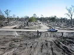 [1] These are homes being built by the Department of Housing and Urban DevelopmentThis picture shows the destruction of the 9th Ward after Katrina. Thousands of people displaced by their homes.