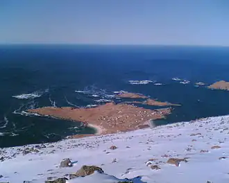 Hovden's climate is a mild coastal climate. The winter is seldom cold. Average temperature in January is −1.4 °C (29.5 °F). The summer is seldom warm. Average temperature in August is 12.1 °C (53.8 °F). The precipitation is quite large with approximately 1,000 millimetres (39 in) per year.[7] The climate is perfect for drying fish since the temperature is seldom below −2 °C (28 °F) or above 10 °C (50 °F) in the most important months between January and May.