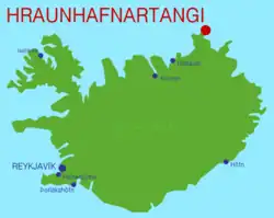 Hraunhafnartangi (Icelandic pronunciation: [ˈr̥œynˌhapnarˌtʰauɲcɪ], lit. 'Lava Harbor Ness') is the second northernmost point of mainland Iceland and was believed to be the northernmost point until 2016 when it lost that title to the close by Rifstangi which was found to exceed it by 68 metres.[1] It is notable for the Hraunhafnartangi Lighthouse.[2]