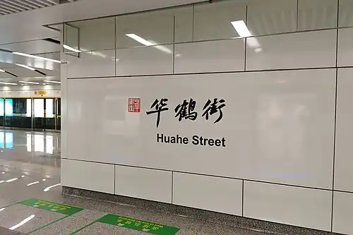 Huahe Street (simplified Chinese: 华鹤街; traditional Chinese: 華鶴街) is a metro station of Line 3 of the Hangzhou Metro in China. It is located in Shangcheng district of Hangzhou.[1] The station was opened on 21 February 2022.[2]