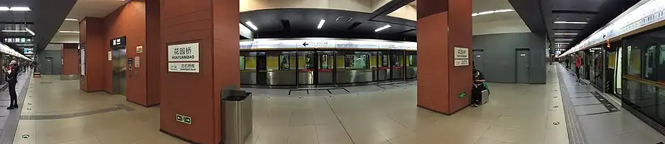 Huayuan Qiao[1] (simplified Chinese: 花园桥站; traditional Chinese: 花園橋站; pinyin: Huāyuán Qiáo Zhàn) is a station on Line 6 of the Beijing Subway.[2] This station opened on December 30, 2012.[3][4]