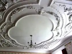 - Stone Bust, Guildhall. A stone bust of him was made in 1910,[47] on the bicentenary of his death, apparently copied from the painting, and was mounted on a plinth on the facade of the South Molton Guildhall, where it survives today. It bears the following inscription: "Hugh Squier AD 1625-1710. Our great benefactor. Erected AD 1910, James Sanders, Mayor". It was possibly erected as a result of the admonition written by the Historian of South Molton J. Cock in his 1893 work Records of ye Antient Borough of South Molton in ye County of Devon,[48] lamenting the 1842 destruction of the Squire family monuments in "The New Chapel", Westminster:
