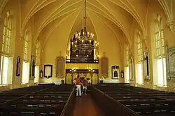 The church's organ, purchased in 1845, is a unique tracker organ designed by New York organ maker Henry Erben (1801–1883). The "tracker" connects the keys and pipe valves, and responds to the organist faster than modern mechanisms. The organ's tone is similar to organs used during the Baroque period.[4]