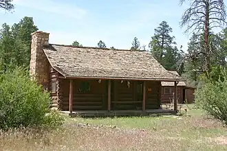 The Hull Cabin was built in the late 1880s near the South Rim of the Grand Canyon by settler William Hull. The Hull family arrived in the area in 1880 and established a ranch in the area, raising sheep and building the Hull Tank, a large earth-banked reservoir for their stock. The Hulls branched out into prospecting and were among the first to take in tourists heading to the Grand Canyon.[2]