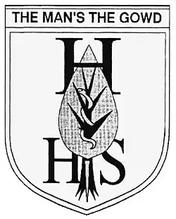 MottoThe crest of Hunter High School, composed of the tree of knowledge interlaced by the serpent of wisdom, with motto "The Man's the Gowd" taken from the Robert Burns song "A Man's a Man for A' That".