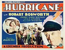 Hurricane is a 1929 American All-Talking adventure sound film directed by Ralph Ince and starring Hobart Bosworth, Johnny Mack Brown and Leila Hyams.[1] The sound was recorded via the Western Electric sound-on-film process. Reviewers noted that the film did not feature any musical score as was the common practice up to that time.[2]