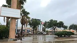 Hanna caused significant crop damage, totaling to $176.6 million (2020 USD).[53] In Port Mansfield, 40% of homes received severe structural damage.[54] Near Laguna Madre, a few boat garages were damaged by high winds.[55] The cities of Mission, McAllen, and Weslaco were also placed under flash flood emergencies due to Hanna's rainbands.[52] Roads in Mission became impassible due to flooding.[56] In Roma, a tin roof was blown off a gas station.[57] In McAllen, a fast food restaurant sign was toppled, and a canal overflowed, flooding numerous roads. In Los Barreras, the roof of a carport was blown away.[58]