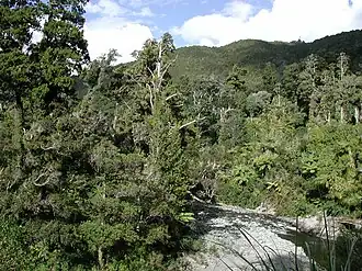 State Highway 2 follows the course of the river for most of its length, with the exception of the Kaitoke Gorge and the head waters, before crossing the Remutaka Range into the Wairarapa.[5]