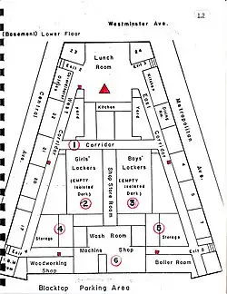 Partial Boston Police Department plan of Hyde Park High School, created to assist assigned officers. Note the "isolated, dark" description of locker room areas