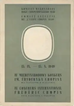 1. ^ a b c "The 4th International Fryderyk Chopin Piano Competition". Fryderyk Chopin Institute. Retrieved 30 July 2021.