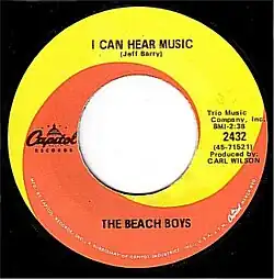 "I Can Hear Music" is a song written by Jeff Barry, Ellie Greenwich and Phil Spector[2] for American girl group the Ronettes (credited as The Ronettes Featuring Veronica) in 1966. This version spent one week on the Billboard Pop chart at number 100.[3] In early 1969, the Beach Boys released a cover version as a single from their album 20/20 (1969), peaking at number 24 in the US.