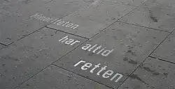 The initiative was taken by Sune Nordgren, inspired by a similar project involving August Strindberg quotes in Stockholm, Sweden. In 2001, Gavin Jantjes was appointed curator of the work. Sixty quotes in steel lettering were to be set into the sidewalks. The work was to be completed by 2006, the 100th anniversary of Henrik Ibsen's death.[1] As a result of delays, by 2006 only three quotes had been laid, at a cost of 1.7 million kr. The Swedish artist duo FA+ (Ingrid Falk and Gustavo Aguerre) had been selected to handle the quotes, but they resigned from the project in May 2006. NOK 400,000 came from the Arts Council Norway and the foundation that oversaw the 100th anniversary, but some of the funds were used for other causes. The group behind the project, the Ibsen Foundation, explained that in their view the money had not been specifically earmarked.[2]
