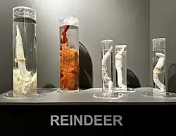 The museum's website states that it enables "individuals to undertake serious study into the field of phallology in an organized, scientific fashion", giving due prominence to a field that until now has only been "a borderline field of study in other academic disciplines such as history, art, psychology, literature and other artistic fields like music and ballet."[21] The museum aims to collect penis specimens from every mammal in Iceland. It also exhibits phallic artwork and penis-related objects or "phallobilia" such as lampshades made from the scrotums of bulls.[4] Other exhibits range "from an 18th-century engraving depicting the circumcision of Christ to a 20th-century plastic penis pacifier."[19] Most of the collection has been donated, and the only purchase to date has been an elephant's penis measuring nearly 1 m (3.3 ft) long. The penises are either preserved in formaldehyde and displayed in jars or are dried and hung or mounted on the walls of the museum.[18]