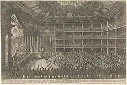 Il pomo d'oro (The Golden Apple) is an opera in a prologue and five acts by the Italian composer Antonio Cesti with a libretto by Francesco Sbarra (1611-1668). It was first performed before the imperial court in a specially constructed open-air theatre Vienna in 1668. The work was so long it had to be staged over the course of two days: the Prologue, Acts One and Two were given on July 12; Acts Three, Four and Five on July 14. Originally planned to mark the wedding of the Habsburg Holy Roman Emperor Leopold I and Margaret Theresa of Spain in 1666, the production was rescheduled to mark the Empress's 17th birthday in 1668. The staging was unprecedented for its magnificence (and expense). The designer Ludovico Ottavio Burnacini provided no fewer than 24 sets and there were plenty of opportunities for spectacular stage machinery, including shipwrecks and collapsing towers.