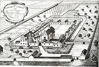 Ilmbach Charterhouse as it was before 1634; view from Maisons de l'Ordre des Chartreux vol. IV.