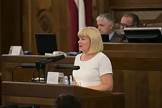 In 2022, she ran in the 2022 parliamentary elections from the "New Unity" list but was not elected.[10] However, she soon became a member of the 14th Saeima, with Arturs Krišjānis Kariņš becoming the Prime Minister.