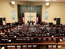 A number of Lutheran Bavarians settled to the north of Perryville, but belonged to the Friedenberg church.[5] By 1862, the Lutheran Bavarians were meeting in the Sandler House in Perryville for their Sunday services rather than making the trip to Friedenberg. In March 1866, a number of them formed a Schul-Gemeinde (a congregation for the purpose of setting up a school) for providing a Christian education in both German and English to their children. They also requested to be relinquished from the Friedenberg congregation for the purpose of stablishing their own congregation. At first, divine services and meetings were held in the Perry County Court House and in the old Methodist church to the north of the Monitor Building. In 1867, the first building was built, which served as both church and school. Pastor Friedrich Besel of the Friedenberg congregation provided pastoral services until the congregation could find its own pastor. In 1869, the Evangelical Lutheran Synod of Missouri, Ohio, and other States assigned Charles H. Demetrio to serve the congregation in Perryville. In 1894, a new church was erected, with the old church serving as the parochial school. English services were introduced in 1921, and by 1963 services were being held only in English.[6][7]