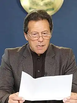 The Imran Khan government was the federal cabinet of Pakistan from 20 August 2018 to 10 April 2022. It was formed by Imran Khan, following general elections on 25 July 2018, which saw the Pakistan Tehreek-e-Insaaf (PTI) come to power. The cabinet had 34 federal ministers, 7 ministers of state, 10 Advisers to the Prime Minister and 35 Special Assistants to the Prime Minister (SAPM), most of whom assumed office on 20 August 2018.[1][2] On 10 April 2022 the government was defeated in a vote of no-confidence against Imran Khan, leading to its subsequent dissolution.[3]