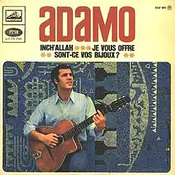"Inch'Allah" is a song composed and sung in French by Salvatore Adamo in 1967. The lyrics were written by Adamo as a peace song[1] in the context of the Six-Day War between Israel and the Arab States.[2] The song was banned in virtually all Arab countries for what they perceived as its pro-Israel sentiments and the mentioning of Jerusalem as a Jewish city after it fell under Israeli control during the war.[3]