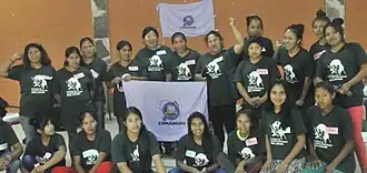 Today, the figure of the India Juliana is claimed both as a historical defender of the indigenous peoples, as well as a symbol of the emancipation of women.[27] Several contemporary authors consider the India Juliana to be an early feminist,[37] and several feminist groups, schools, libraries and centers for the promotion of indigenous women in Paraguay are named after her.[11][38] Writer Andrés Colmán Gutiérrez of Última Hora noted that the she is "carried as a banner" in the annual demonstrations of International Women's Day and the International Day for the Elimination of Violence against Women, and described her as "perhaps the first feminist indigenous Guaraní heroine, a rebel against the macho and patriarchal culture, who denies the sugarcoated official story about the Spanish conquest in Paraguay".[11] The figure of the India Juliana has been reclaimed as a foremother by Paraguayan academics and activists as part of a process of "recovery of feminist and women's genealogies" in South America, intended to move away from the Eurocentric vision.[39] The same has happened in Ecuador with Dolores Cacuango and Tránsito Amaguaña; in the central Andes region with Bartolina Sisa and Micaela Bastidas; and in Argentina with María Remedios del Valle and Juana Azurduy.[39]