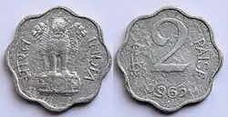 1. ^ a b "2 paise coins". India Numismatics. Retrieved 21 August 2017.