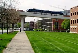 The Indiana University Health People Mover, formerly the Clarian Health People Mover, was a 1.4-mile (2.3 km) long, 4 ft (1,219 mm) narrow gauge[3] people mover in the city of Indianapolis in the United States. The system opened on June 28, 2003,[4] to connect Methodist Hospital of Indianapolis, Indiana University Hospital, and James Whitcomb Riley Hospital for Children, jointly operated as a single hospital by Indiana University Health.[5]