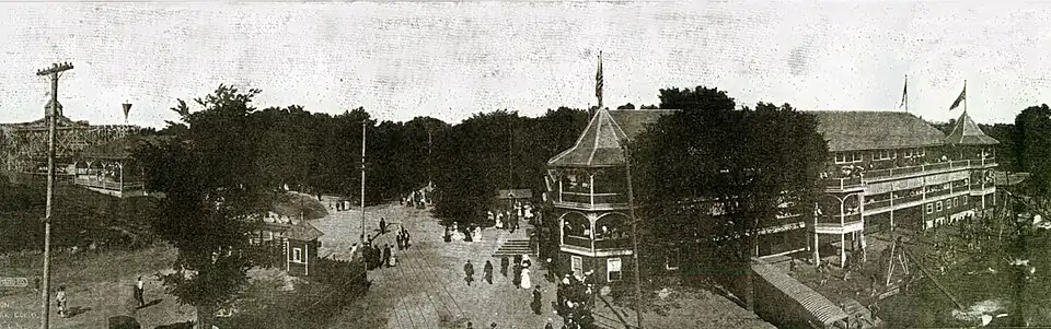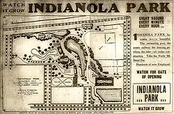 Indianola Park was a trolley park that operated in Columbus, Ohio's University District from 1905 to 1937.[2] The amusement park was created by Charles Miles and Frederick Ingersoll,[3] and peaked in popularity in the 1910s, entertaining crowds of up to 10,000 with the numerous roller coasters and rides, with up to 5,000 in the massive pool alone.[4] The park was also the home field for the Columbus Panhandles for half of a decade.[4][5] In the 1920s, new owners bought and remodeled the park, and it did well until it closed at the end of the Great Depression.[6]