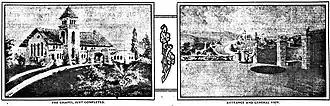 Left, the chapel; right, entrance and general view, from a newspaper advertisement, 1907