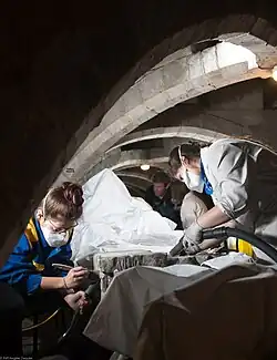 The laboratory consists of a team including a research engineer, in charge of the laboratory, specialising in the analysis of organic matter through gas chromatography-mass spectrometry, a project engineer, assistant to the laboratory head, is in charge of analysing modern hybrid matter through infrared spectroscopy, an assistant engineer and assistant to the laboratory head, is in charge of micro x-ray fluorescence and the analysis of inorganic matter.
