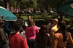 IGS sponsors conferences, seminars and workshops for business and governmental leaders as well as the public.[11] One of its main efforts along these lines related to the concept of “green businesses” called the Iniciativa Negocios Verdes (Green Businesses Initiative). This includes a “clinic” to help create environmentally friendly businesses, which is sponsored by corporations such as Walmart México, FEMSA and Banorte.[9][12] It sponsors workshops, seminars and courses in business and environment, creating government programs against climate change and general environmental education for both campus students and the public.[11][12] Major conferences include Think Green 2013 and the annual Cumbre Negocios Verdes (Green Businesses Summit).[6][12] The 2012 Cumbre featured nineteen panel discussions and 110 exhibitors, which included Pavan Sukhdev, Peter Webster, George Kell, John Wiebe, Daniel Servitje of Grupo Bimbo, and Louise Goesser of SIEMENS Mexico.[9][13] An event on journalism in a green economy in 2012 attracted participants and attendees from thirty nine media outlets in Mexico.[9] The institute has also acted as a consultant to various Mexican governmental agencies, including participated in the Foro de Consulta (Consulting Forum) of the federal government in the development of the National Development Plan 2013-2018.[5]