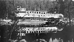 International was built at the Mirror Lake shipyard just south of Kaslo, British Columbia by James Carson for the International Navigation & Trading Company.[1][2] The IN&T's rival, the Columbia and Kootenay Steam Navigation Company had launched the steamer Kokanee in April 1906 at Nelson, prompting IN&T to build International in response.[2] The frames for International were pre-manufactured and shipped to Mirror Lake, where they arrived in April 1896, and construction began soon afterwards.[2]