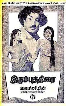 Irumbu Thirai (transl. Iron Curtain) is a 1960 Indian Tamil-language film produced and directed by S. S. Vasan. The film stars Sivaji Ganesan, Vyjayanthimala, K. A. Thangavelu and B. Saroja Devi, with S. V. Ranga Rao, Pandari Bai and Vasundhara Devi in supporting roles. A remake of Vasan's own Hindi film Paigham (1959), it revolves around two brothers Manikam and Kondamuthu and their mill owner.