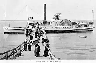In March 1886 the Island Home became one of the initial four steamers operating for the newly organized New Bedford, Martha's Vineyard, and Nantucket Steamboat Co.[4] (The other three were River Queen, Martha's Vineyard and Monohansett.)
